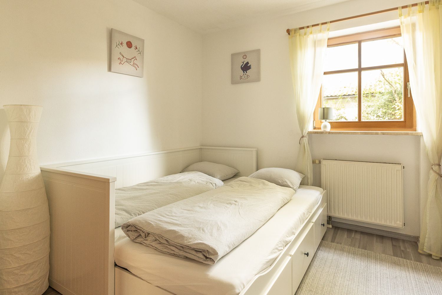 kann darüber hinaus bequem bei den Eltern im zwei Metter breiten Doppelbett zusätzlich schlafen.